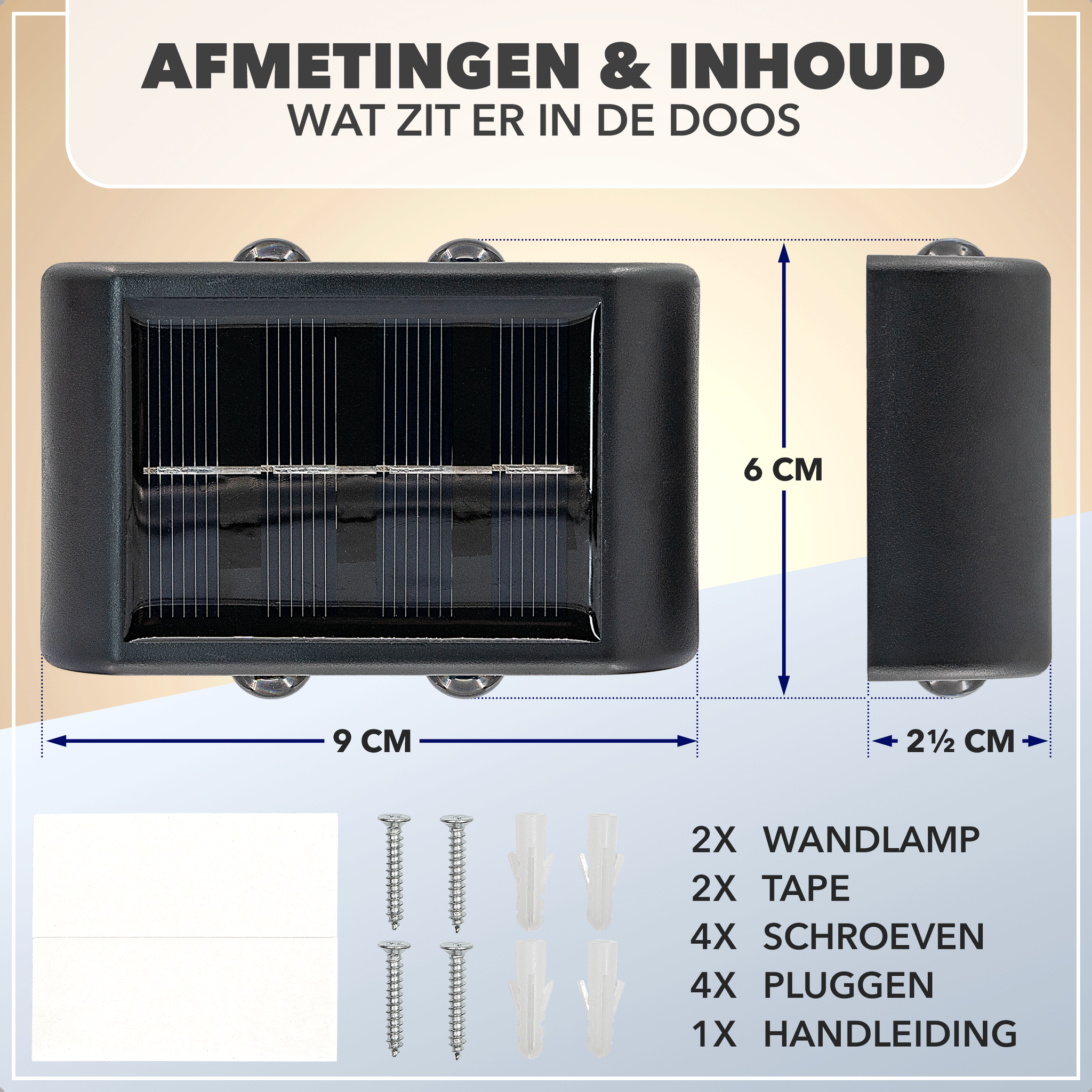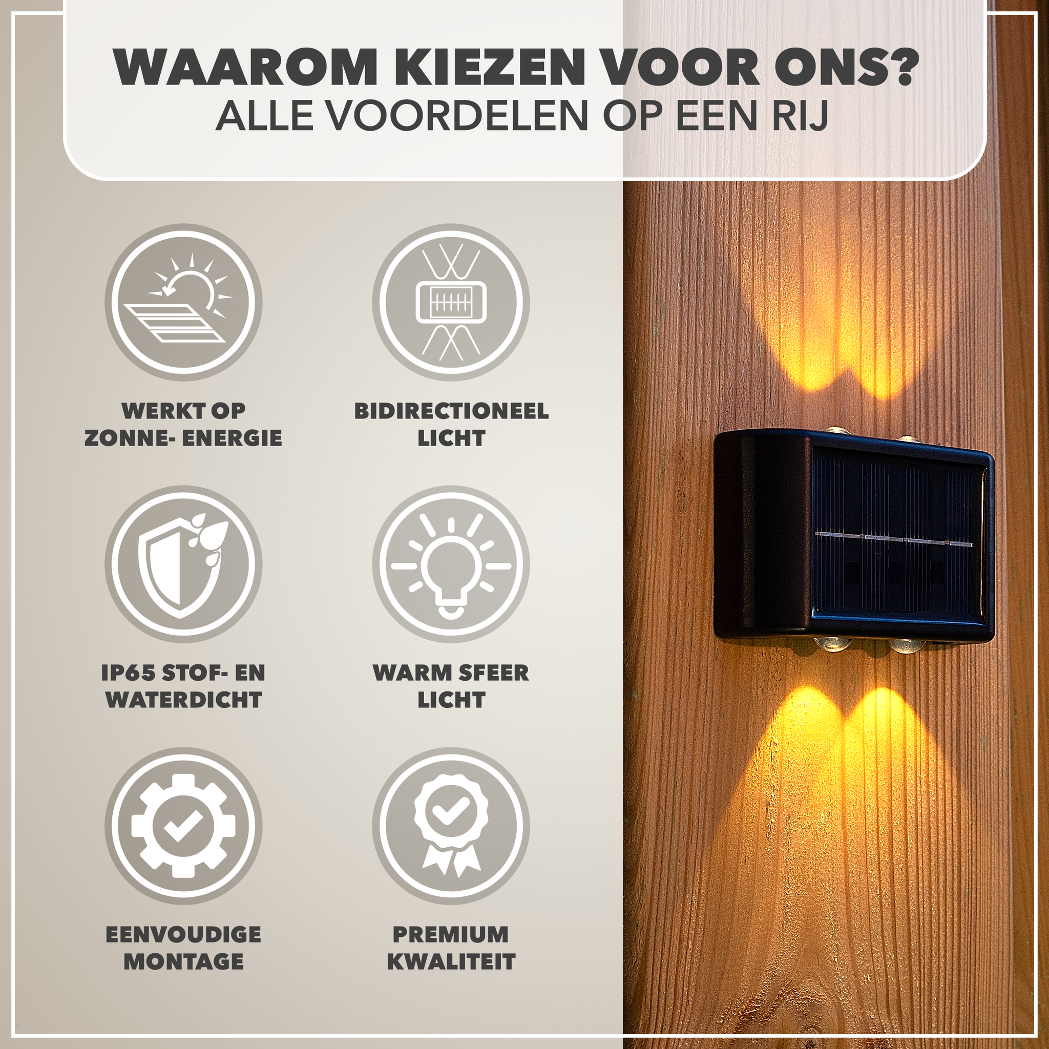 Warm Licht voor Sfeer: De Solar Wandlampen stralen een warm en uitnodigend licht uit, waardoor een gezellige sfeer wordt gecreëerd. Perfect voor ontspanning op je terras, verlichting van je tuinpad of het creëren van een gastvrije ambiance bij de voordeur.