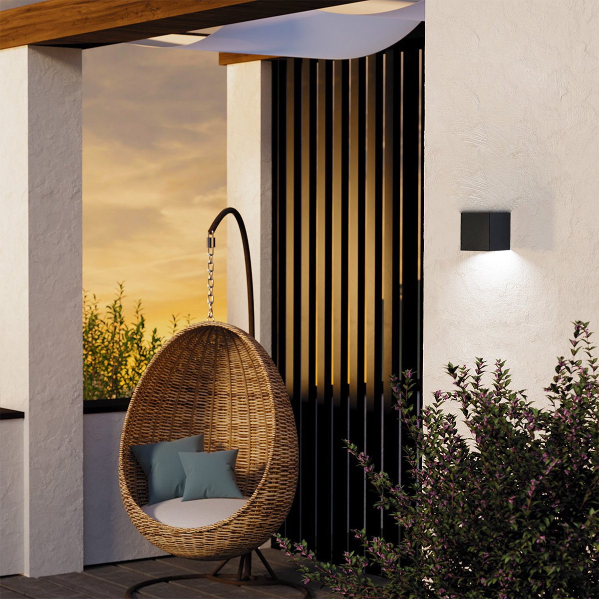 Met een IP44-classificatie is deze wandlamp spatwaterdicht en geschikt voor zowel binnen- als buitengebruik. Verlicht eenvoudig je tuin, gevel of pad en creëer een sfeervolle ambiance in elke ruimte. De lamp is gemaakt van hoogwaardig aluminium, wat zorgt voor een stevige en duurzame afwerking.